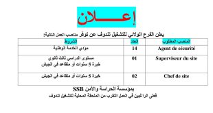 و عليه لمن تتوفر فيه شروط المنصب الاتصال بالملحقة المحلية للتشغيل بالجلفة مرفقا بنسخة شهادة تثبت الخبرة