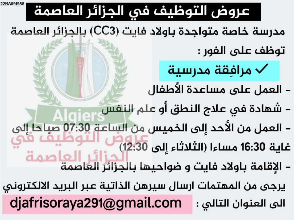 مدرسة خاصة متواجدة بأولاد فايت الجزائر العاصمة توظف فورا