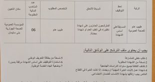 تعلن المؤسسة العمومية للصحة الجوارية لولاية الجلفة عن فتح مسابقة توظيف على اساس الشهادة في المناصب التالية ads طبيب عام للصحة العمومية عدد المناصب 03 نمط التوظيف مسابقة على اساس الشهادة تارخ الاعلان 24 ماي 2021 اخر اجل لايداع الملفات 15 وم من تارخ …