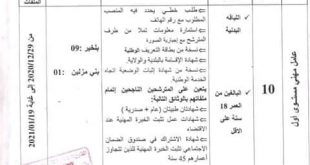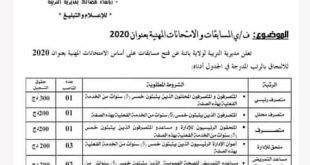 إعلان عن توظيف على أساس الإختبار المهني بمركز التكوين المهني و التمهين – مركز الخوارزمي – الكاليتوس بالعاصمة ads حارس : 01 سائق سيارة من المستوى الأول : 01 تاريخ النشر : 30 ديسمبر 2020 آخر أجل لوضع الملفات : بعد 20 يوم من …