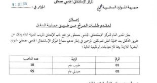 وزارة الصحة مؤسسة الصحة والسكان لولاية الجزائر المؤسسة العمومية الاستشفائية بولوغين بن زيري ads إعلان توظيف عن طريق التكمل بعد عملية النقل في إطار تدعيم المؤسسات الاستشفائية الجديدة (عين البنيان) بالموارد البشرية اللازمة، تعلن إدارة المؤسسة عن فتح باب الترشح للتوظيف عن طريق النقل …
