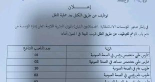 وزارة التربية الوطنية مديرية التربية لولاية خنشلة ads خنشلة في 05/10/2025 إعــلان عن توظيف في إطار التعاقد نظراً لاستنفاذ القوائم الاحتياطية في المنصة التعاقد في الأرضية الوطنية للرقمنة التابعة لوزارة التربية الوطنية تخصص تربية بدنية و رياضية في الطور الابتدائي و الثانوي، تعلن مديرية …