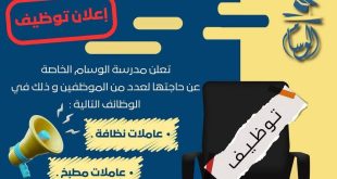 إعلان توظيف ads تعلن مدرسة الوسام الخاصة عن حاجتها لعدد من الموظفين و ذلك في الوظائف التالية: عاملات نظافة عاملات مطبخ يرجى لكل من يهمه الأمر التواصل معنا عبر رقم الهاتف: 06 61. 61. 12. 34 أو التقرب إلى مقر المؤسسة الكائن بـ: 06 …