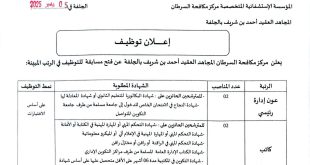 اعلان عن توظيف مديرية الخدمات الجامعية لولاية الوادي ads تعلن مديرية الخدمات الجامعية لولاية الوادي عن فتح مسابقة توظيف على اساس الشهادة في الرتب المبينة ادناه متصرف محلل عدد المناصب 02 منصب نمط التوظيف: مسابقة على اساس الشهادة متصرف عدد المناصب 01 منصب نمط …
