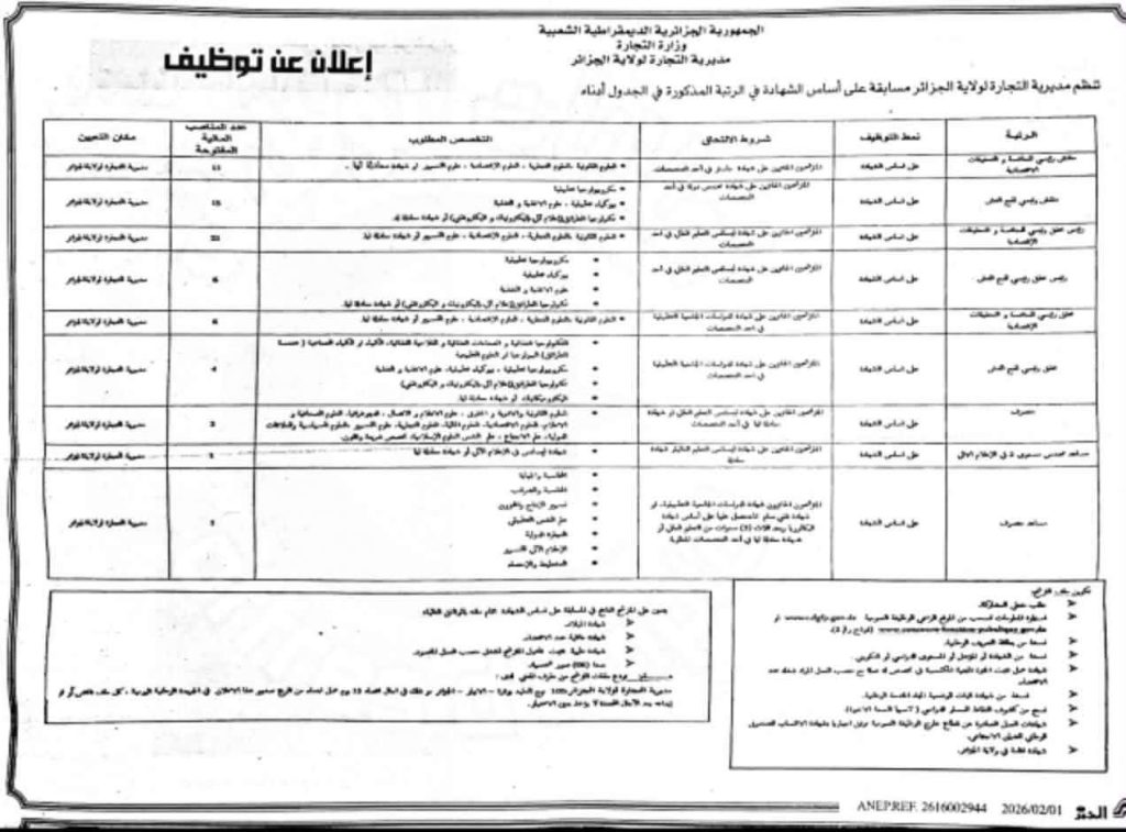 مديرية التجارة تفتح مسابقات توظيف في العديد من التخصصات الإدارية