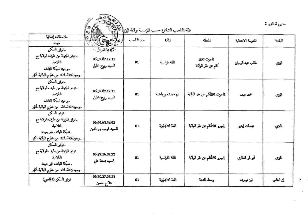 مديرية التربية تعلن عن توفر مناصب بصيغة التعاقد في عدة مواد