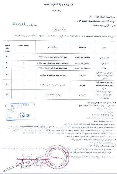 - مديرية الصحة و السكان تفتح مسابقات توظيف:
