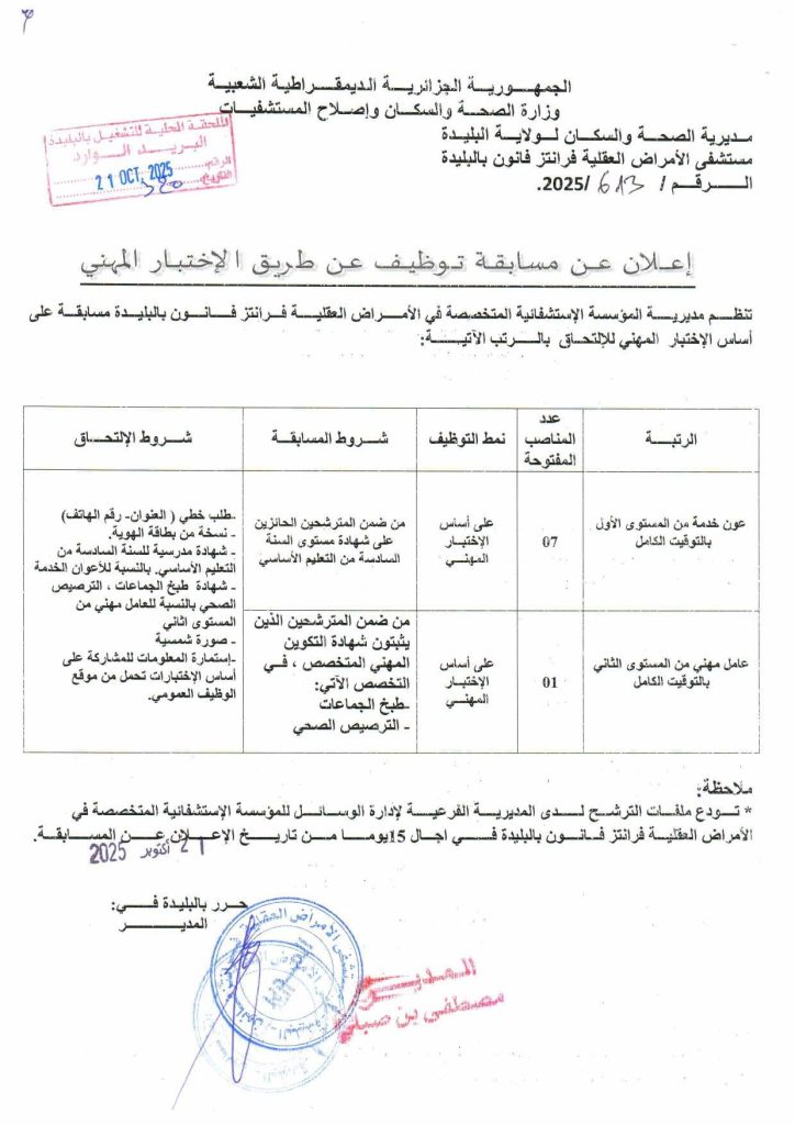 - مديرية المؤسسة الاستشفائية المتخصصة في الأمراض العقلية فرانتز فانون بالبليدة