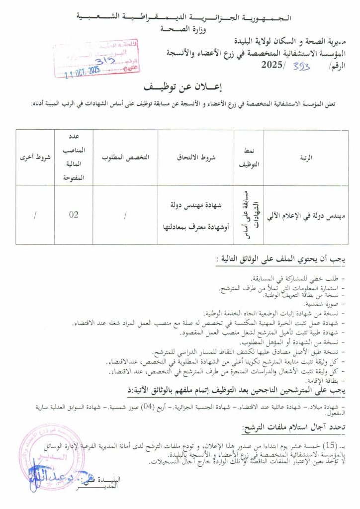 - المؤسسة الاستشفائية المتخصصة في زرع الأعضاء والأنسجة البليدة