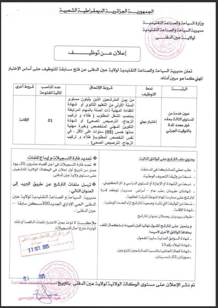 مسابقات توظيف في ولاية عين الدفلى و الشلف