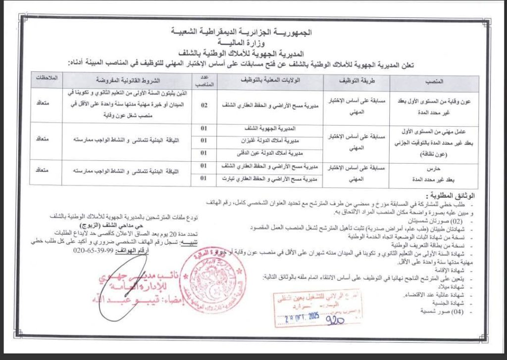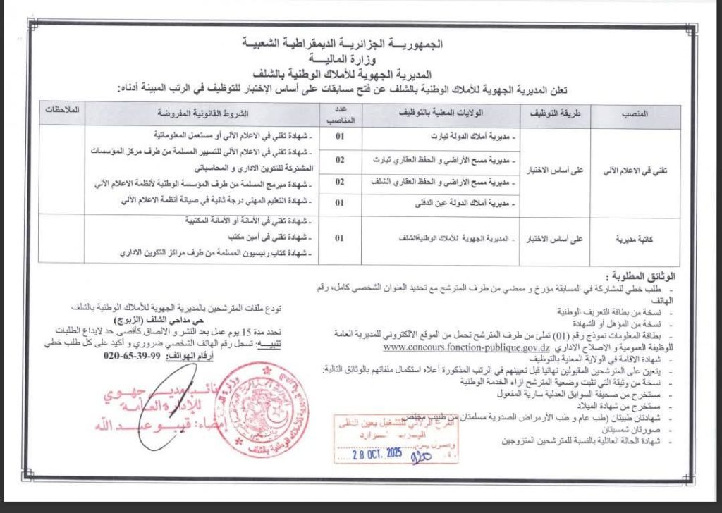 - المديرية الجهوية للأملاك الوطنية بالشلف (وزارة المالية).