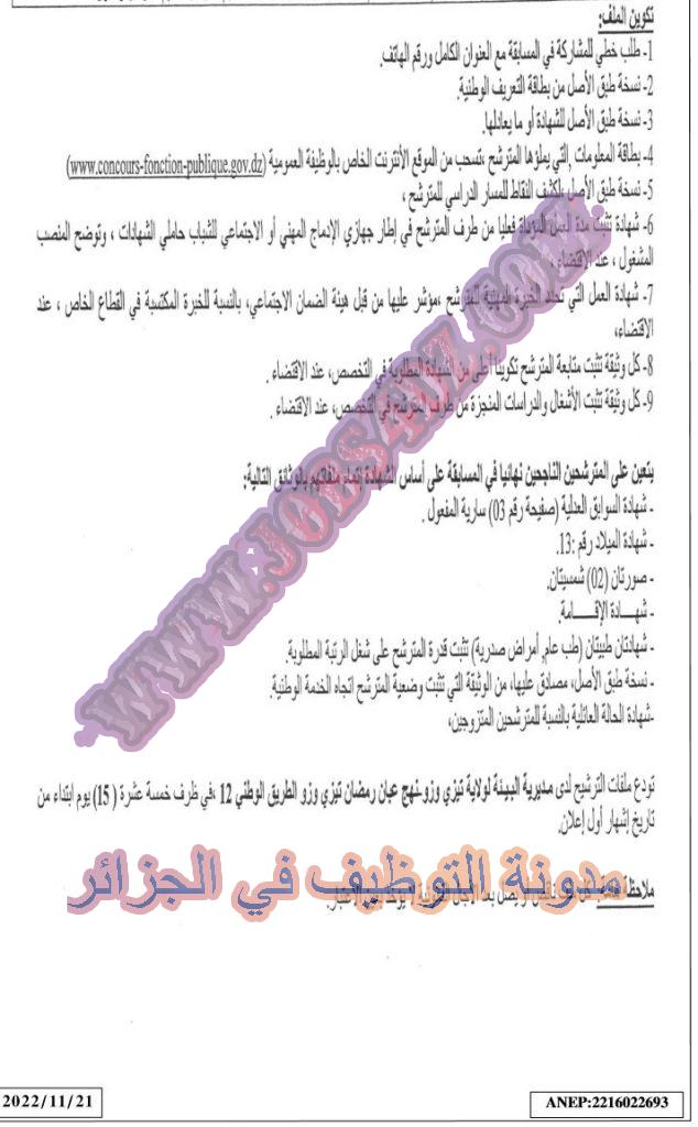 - ملاحظة: الملف متغير من مسابقة لاخرى لذلك يرجى التاكد من صورة الاعلان ادناه او التقرب من الادارة المعنية
