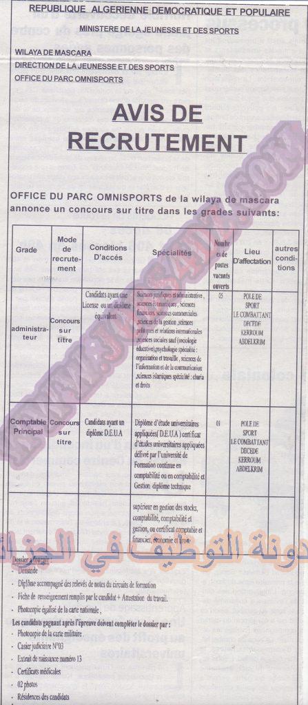 تعلن مديرية ديوان المركب المتعدد الرياضات لولاية معسكر عن فتح مسابقة توظيف على اساس الشهادة في الرتب المبينة ادناه