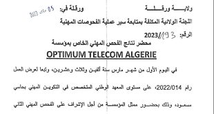 أكمل القراءة »محضر نتائج خاص بمؤسسة Optimum Télécom Algérie