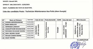 الفرع الولائي للتشغيل ورقلة عرض عمل شركة كوسيدار COSIDER CANALISATION ads يعلن الفرع الولائي للتشغيل ورقلة عن عرض عمل شركة كوسيدار COSIDER CANALISATION كما هو موضح ادناه الهيئة المستخدمة شركة كوسيدار COSIDER CANALISATION المناصب المطلوبة GARDIEN عدد المناصب: 20 ANIMATEUR HSE عدد المناصب: 02 …