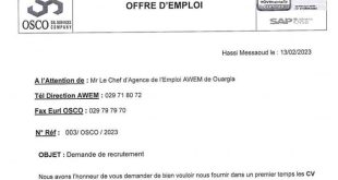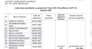 الفرع الولائي للتشغيل ورقلة مؤسسة NAFTAL CBR مخطط ايداع الملفات الخاص بمؤسسة NAFTAL CBR إختصاص: Chauffeur LHP CA. بحاسي مسعود ads أيام 19، 20، 21، 22، 23 فيفري 2023. آخر أجل لوضع الملفات هو يوم الخميس 2023 فيفري 23. مخطط إيداع الملفات الخاص بمؤسسة …