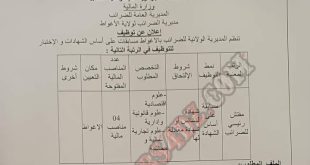 أكمل القراءة »اعلان عن توظيف بالمديرية الولائية لضرائب بولاية الاغواط
