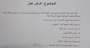الملحقة المحلية للتشغيل مستغانم عرض عمل اذاعة مستغانم الجهوية ads تعلن الملحقة المحلية للتشغيل مستغانم عن عرض عمل باذاعة مستغانم الجهوية كما هو موضح ادناه الهيئة المستخدمة اذاعة مستغانم الجهوية المناصب المطلوبة عون امن ووقاية عدد المناصب: 01 نوع العقد عقد عمل غير محدد …