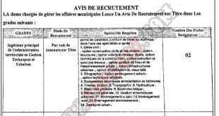 اعلان عن توظيف ads اعلانات توظيف بالولايات التالية الجزائر العاصمة ،بسكرة ،قالمة الجلفة التفاصيل كاملة مرفقة ادناه بلدية المحمدية دائرة الدار البيضاء ولاية الجزائر تعلن بلدية المحمدية بالجزائر العاصمة عن فتح مسابقة توظيف على اساس الشهادة في الرتب المبينة ادناه مهندس معماري مفتش النظافة …