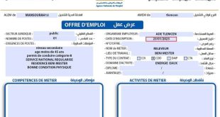 أكمل القراءة »اعلان عن توظيف بمديرية النقل لولاية تلمسان