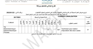 الفرع الولائي للتشغيل لولاية ورقلة عرض عمل ads شركة كوسيدار COSIDER CANALISATION يعلن الفرع الولائي للتشغيل ورقلة عن عرض عمل بشركة كوسيدار COSIDER CANALISATION كما هو موضح ادناه الهيئة المستخدمة كوسيدار COSIDER CANALISATION المنصب المطلوب technicien pour station d’epuration des eaux usees عدد المناصب: …