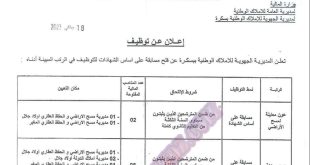 اعلان عن توظيف اعلانات توظيف بالولايات التالية برج باجي مختار المغير اولاد جلال قسنطينة ادرار بومرداس التفاصيل كاملة مرفقة ادناه المديرية الجهوية للاملاك الوطنية بولاية بسكرة ads تعلن المديرية الجهوية للاملاك الوطنية بولاية بسكرة عن فتح مسابقة توظيف على اساس الشهادة وعلى اساس الاختبار …