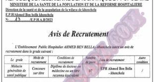 أكمل القراءة »اعلان عن توظيف بالمؤسسة العمومية الاستشفائية احمد بن بلة خنشلة