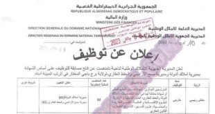 أكمل القراءة »اعلان عن توظيف بالمديرية الجهوية للاملاك الوطنية لناحية تمنراست