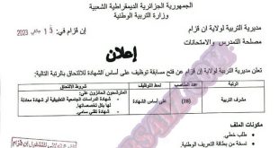 أكمل القراءة »اعلان عن توظيف بمديرية التربية لولاية عين قزام