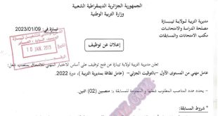 أكمل القراءة »اعلان عن توظيف بمديرية التربية لولاية تيبازة