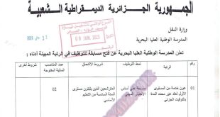 أكمل القراءة »اعلان عن توظيف بالمدرسة العليا البحرية بتيبازة
