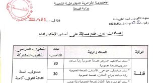 اعلان المعهد الوطني للتكوين العالي شبه الطبي سكيكدة ads يعلن المعهد الوطني للتكوين العالي شبه الطبي سكيكدة عن افتتاح التسجيلات الخاصة بالمسابقات على اساس الاختبارات للالتحاق بالتكوين المتخصص لسلك مساعدي التمريض للصحة العمومية مساعدي جراحي الاسنان للصحة العمومية اعوان رعاية اطفال للصحة العمومية لولاية …