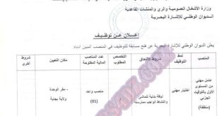 اعلان عن توظيف الديوان الوطني للاشارة البحرية ads تعلن الديوان الوطني للاشارة البحرية عن فتح مسابقة توظيف على اساس الاختبار المهني في الرتب المبينة ادناه مهندس دولة في الموارد المائية عدد المناصب 01 منصب نمط التوظيف مسابقة على اساس الاختبار المهني ملف مسابقة على …
