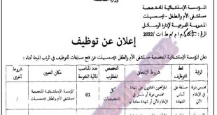 أكمل القراءة »اعلان توظيف بالمؤسسة الاستشفائية المتخصصة الام والطفل بتيسمسيلت