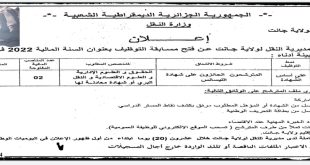 أكمل القراءة »اعلان توظيف بمديرية النقل لولاية جانت