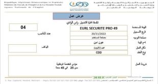 الملحقة المحلية للتشغيل راس الوادي عرض عمل مؤسسة EURL SECURITE PRO 49 ads تعلن الملحقة المحلية للتشغيل راس الوادي عن عرض عمل بمؤسسة EURL SECURITE PRO 49 في المناصب المبينة ادناه المهنـة : agent de sécurité عدد المناصب : 04 طبيعة العقد : عقد …
