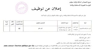 اعلان عن توظيف المؤسسة العمومية الاستشفائية بوقاعة سطيف ads تعلن المؤسسة العمومية الاستشفائية بوقاعة سطيف عن فتح مسابقة توظيف على اساس الشهادة المهني في الرتب المبينة ادناه طبيب عام في الصحة العمومية عدد المناصب 03 نمط التوظيف مسابقة على اساس الشهادة ملف المسابقة على …