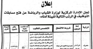 أكمل القراءة »اعلان توظيف بالادارة المركزية لوزارة الشباب والرياضة