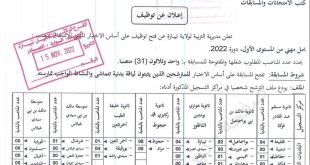 أكمل القراءة »اعلان توظيف بالمؤسسة العمومية الاستشفائية بوقاعة ولاية سطيف