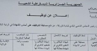 أكمل القراءة »اعلان عن توظيف بمديرية التربية لولاية الجزائر غرب