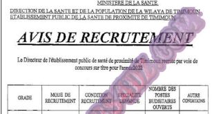 أكمل القراءة »اعلان عن توظيف بالمؤسسة العمومية للصحة الجوارية تيميمون