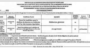 أكمل القراءة »اعلان عن توظيف بالمؤسسة العمومية للصحة الجوارية ايليزي