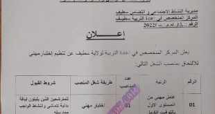 اعلان عن توظيف مركز التكوين المهني والتمهين طالب محمد اولاد يعيش البليدة ads يعلن مركز التكوين المهني والتمهين طالب محمد اولاد يعيش البليدة عن فتح توظيف على اساس الاختبار المهني في الرتب المبينة ادناه عامل مهني من المستوى الاول عدد المناصب 01 نمط التوظيف …