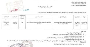 اعلان عن توظيف مديرية الخدمات الجامعية لولاية قالمة ads تعلن المؤسسة العمومية الإستشفائية دباخ السعيد بالمغير عن فتح توظيف على اساس الشهادة في الرتب المبينة ادناه عون وقاية من المستوى الاول بالتوقيت الكامل عدد المناصب 01 نمط التوظيف على اساس الاختبار المهني عامل مهني …