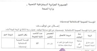 أكمل القراءة »اعلان توظيف بالمؤسسة العمومية الاستشفائية بتيسمسيلت