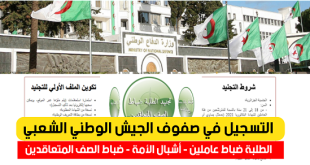 موقع وزارة الدفاع الوطني مفتوح للتسجيل فيما يخص ضباط الصف ورجال الصف لمن يريد الإلتحاق بصفوف الجيش الوطني الشعبي ads – ضباط الصف : https://preinscription.mdn.dz/soff/… -رجال الصف : https://preinscription.mdn.dz/hdr/…