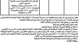 اعلان عن توظيف مديرية المواصلات السلكية واللاسلكية الوطنية ايليزي تعلن مديرية المواصلات السلكية واللاسلكية الوطنية لولاية ايليزي عن فتح توظيف على اساس الشهادة للالتحاق بالرتبة التالية ads مهندس دولة في الاعلام الالي عدد المناصب : 01 نمط التوظيف على اساس الشهادة تاريخ نشر الاعلان …