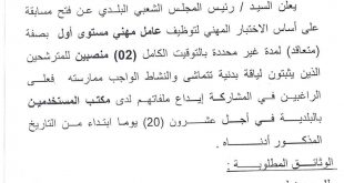 أكمل القراءة »اعلان توظيف بالمجلس الشعبي البلدي لبلدية الشعبية باولاد جلال