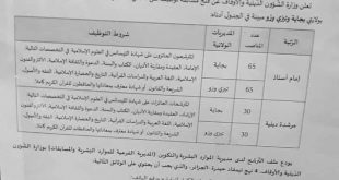 إعــــلان عــــــــن تـــوظـيــف بــــجــــايـــة تــــيــزي وزو وزارة الشؤون الدينية والأوقاف ads تعلن وزارة الشؤون الدينية والأوقاف عن فتح مسابقة توظيف على أساس الاختبارات بمجموع 190 منصب لفائدة مديريتي الشؤون الدينية والأوقاف بولايتي بــــجــــايـــة و تـــــيــزي وزو في الرتب التالية : ?امام استاذ 65منصب بولاية …