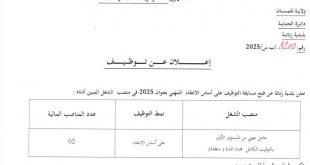 أكمل القراءة »اعلان عن توظيف في المؤسسة العمومية للصحة الجوارية عين الملح